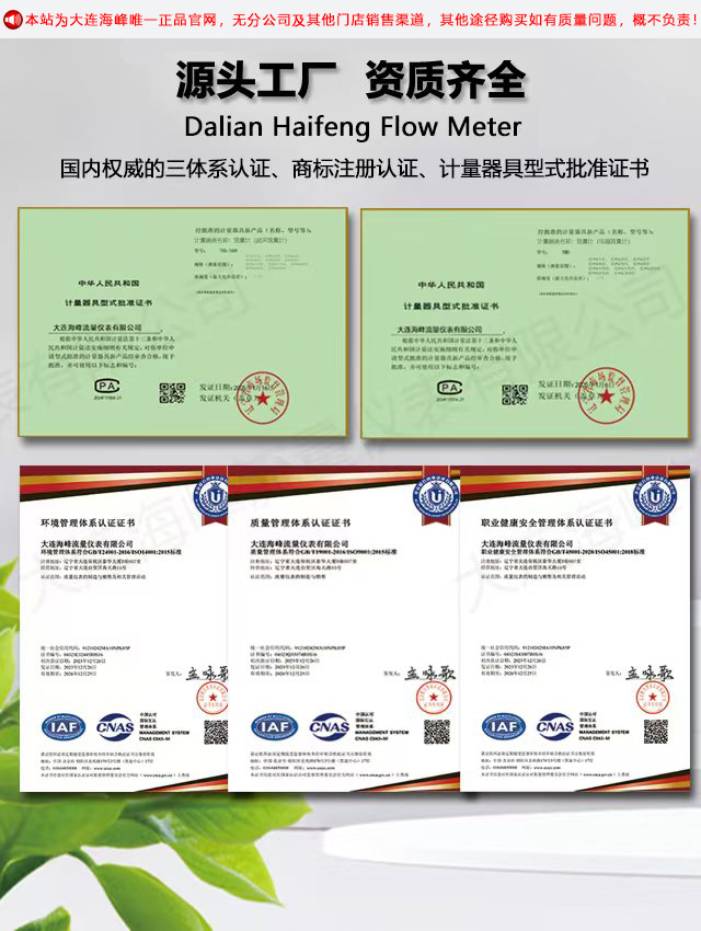 大连海峰流量仪表有限公司是一家开发设计,生产制造流量仪表的高新技术企业,专注流量仪表行业多年。主要生产电磁流量计、超声波流量计、涡轮流量计、罗茨流量计、涡街流量计等,年销售十余万台。公司拥有先进的液体和气体流量标定装置,液体标定最大口径DN2600,气体标定最大口径DN300;我们不断精进,不断创新,降低成本,让利于广大用户,满足不同的市场需求,产品在国内被各行业广泛应用同时也大量出口世界各地,在国内外拥有很高知名度。